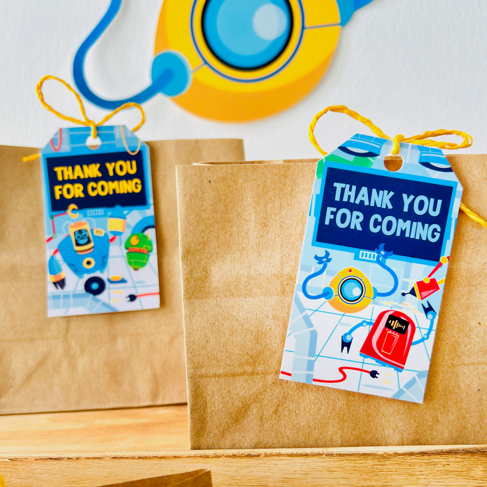 Bring some robotic fun to your kid's birthday bash with this Robots and Science Party Collection! Enjoy exploring the corners of robotics and sci-fi with this space age set of decorations to make their party out of this world. So put on your space helmet and get the party started!