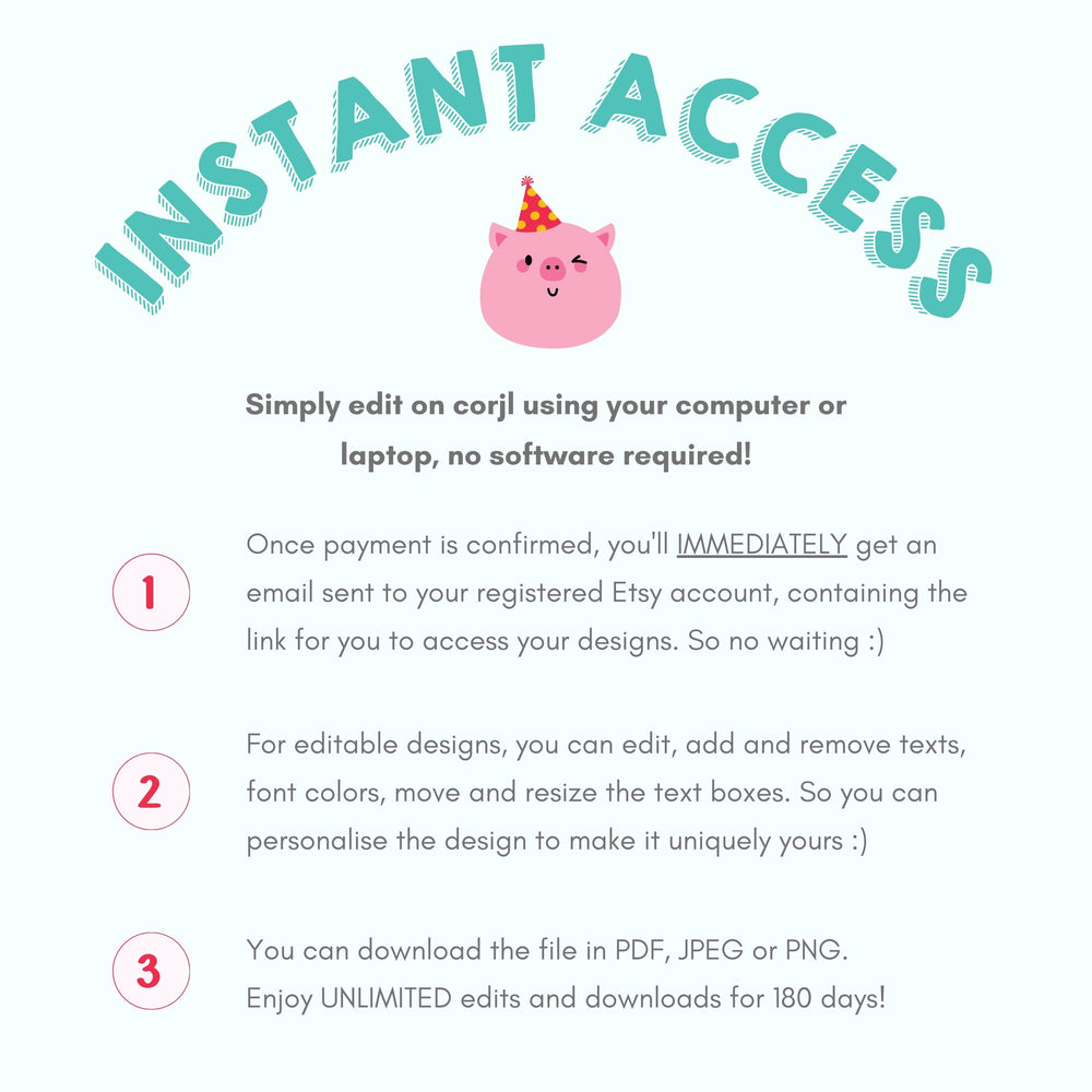 Note: This is a digital download file, no physical item will be sent to you. Please use a computer or tablet for the best experience when customizing these designs.